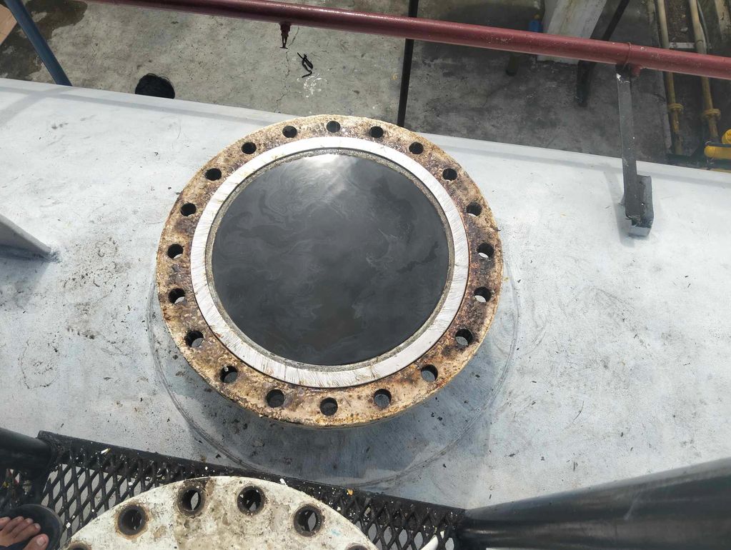 Water filling of the LPG tank with water as part of the hydrostatic testing process during requalification. The water filling ensures that the vessel is safely pressurized for integrity testing, allowing accurate assessment of leaks, strength, and overall structural condition. This critical step verifies the tank’s ability to withstand operating pressure, ensuring safety and compliance before it i